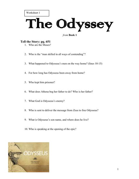 The odyssey study guide questions Goal: To read and study the epic tale of Odysseus; to understand the epic poem and how it relates to our lives. Purpose: To reflect on the Odyssey and guide you through your reading.